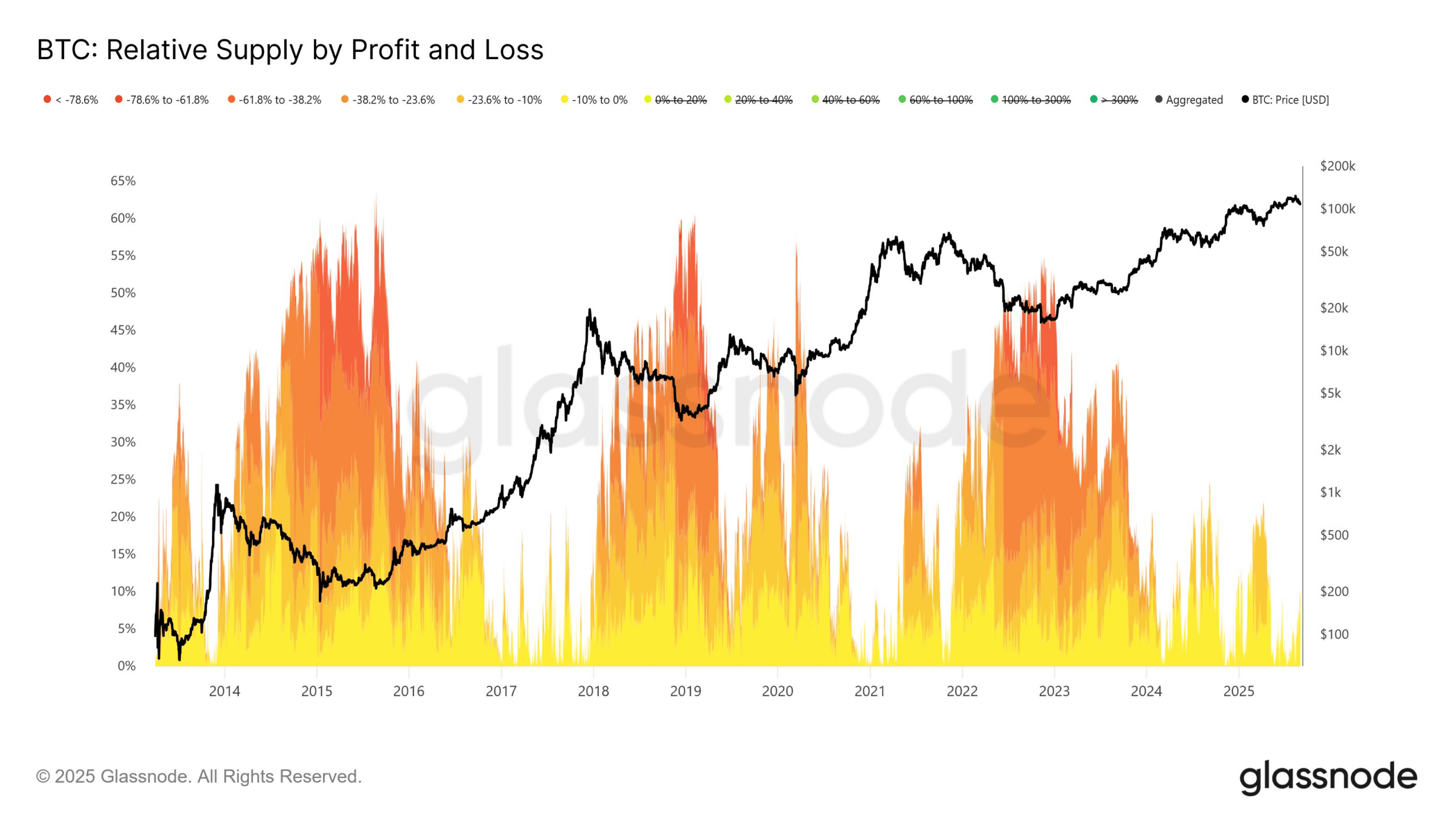 Consider this statistic: At $110,000, only 9% of Bitcoin’s total supply was in a loss position, representing up to 10% in unrealized losses. In comparison, the market bottom during this cycle saw more than 25% of the supply underwater, with losses reaching 23%.
