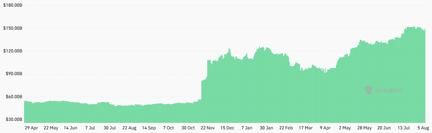 Currently, US spot Bitcoin ETFs collectively hold $150 billion in assets, while gold instruments hold $198 billion as of July 2025, according to a Forbes report.