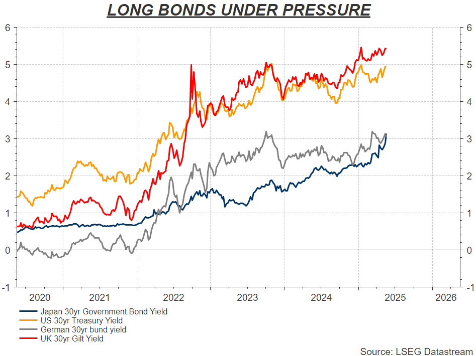 Interestingly, the surge in long-term Japanese bonds was not mirrored in shorter-term maturities. The 10-year bond yield is 1.53%, and the 5-year bond yield is just 1%. As Reuters pointed out, this implies a strategic adjustment by major Japanese pension funds and insurance companies as the Bank of Japan “normalizes” interest rates. These institutions might now be reassessing both duration risk and foreign bond exposure, which could create problems for U.S. Treasurys if (or when) they begin to reduce their holdings.