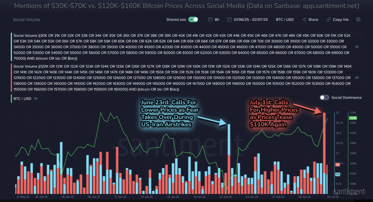 Crowd calls for higher Bitcoin prices. Source: Santiment