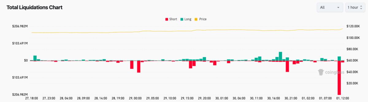 CoinGlass data reveals that short liquidations in the cryptocurrency market totaled $400 million in the past 24 hours at the time of reporting.