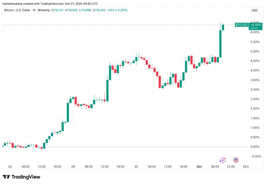He concluded that this could potentially signal the start of a “risk-on” rally, with investors rotating into Bitcoin.