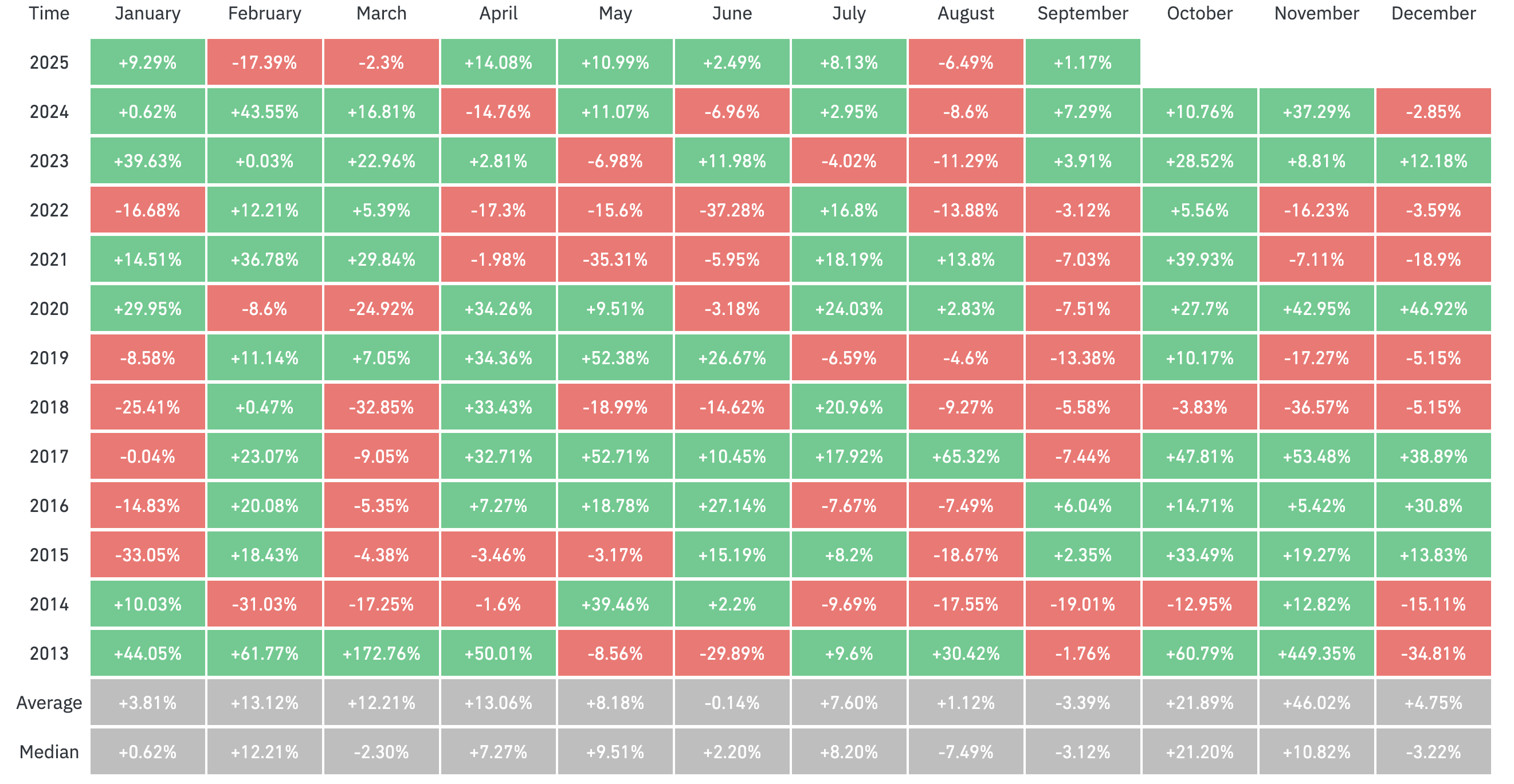 “If you had invested in BTC on October 1st, you would have realized profits 12 times since 2009, with a peak monthly return of 213% in 2010. More recently, since 2020, a simple investment in BTC on October 1st would have produced returns of between 7.5% and 30.5% within the month. Consequently, it is difficult to dismiss seasonality in BTC altogether, although this could be influenced by broader seasonal trends across all financial markets,” he posted.