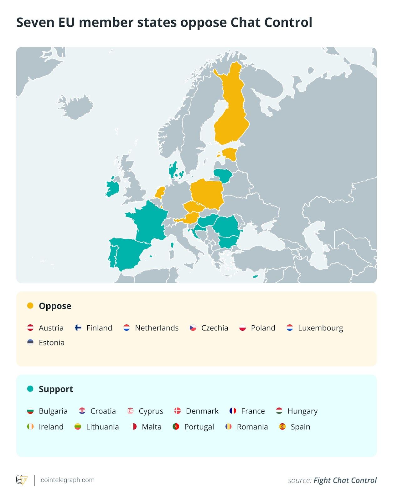 The number of European Union member states opposing the proposed Chat Control legislation has risen to seven. Furthermore, the number of EU members supporting the law has decreased from 15 at the beginning of the month to 12. This information comes from Fight Chat Control, an organization monitoring the progress of the measure.