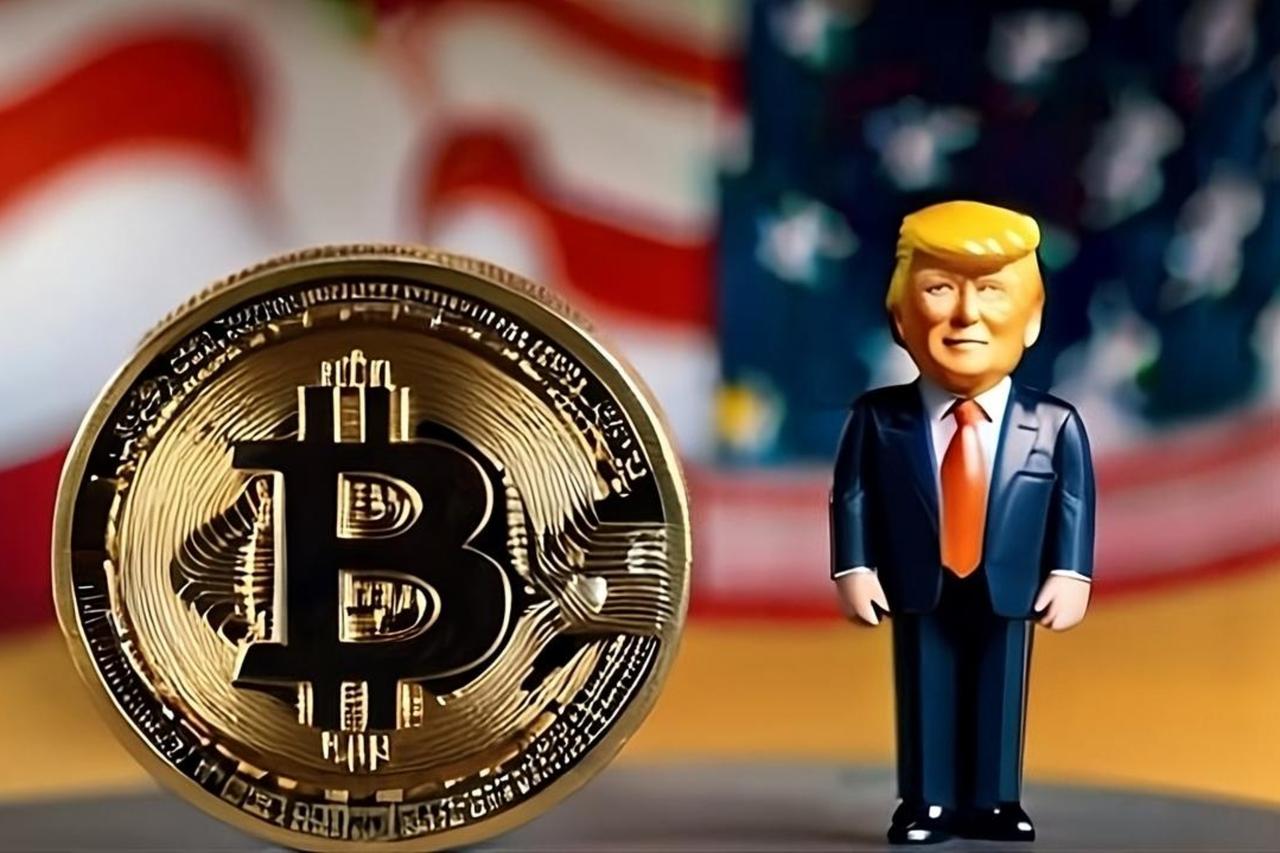 A digitally altered image shows the Bitcoin logo alongside a small representation of Donald Trump, superimposed on a faded American flag. This symbolizes the connection between the world of cryptocurrencies and the United States government policies under the Trump administration. (Image courtesy of Bitcoin Magazine)