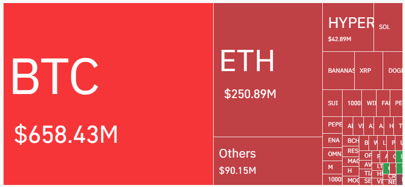 Out of this total, Bitcoin positions accounted for $658.43 million, while Ethereum positions made up $250.89 million.