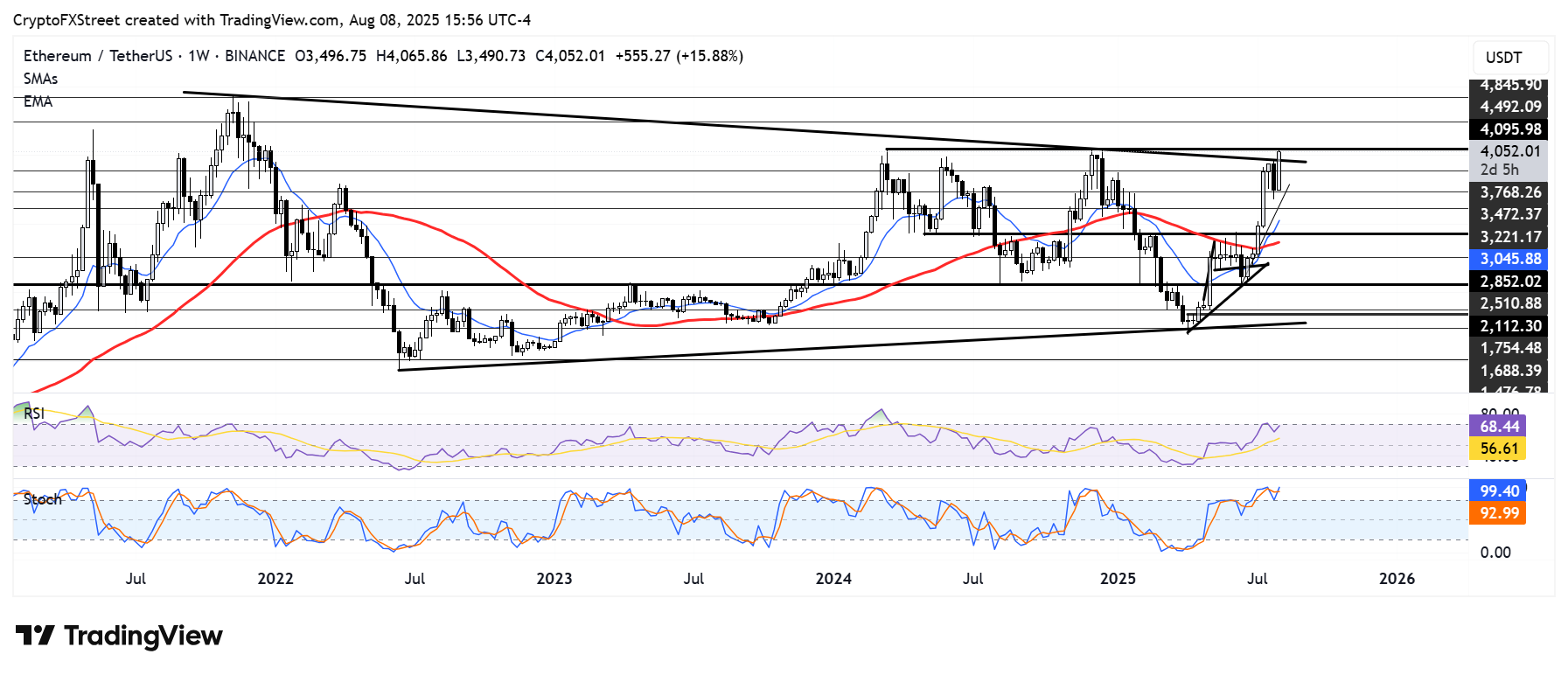 A breakout above the $4,100 threshold could spark another bullish surge, potentially propelling ETH towards the $4,500 level, a critical resistance zone before revisiting its all-time high of $4,868.