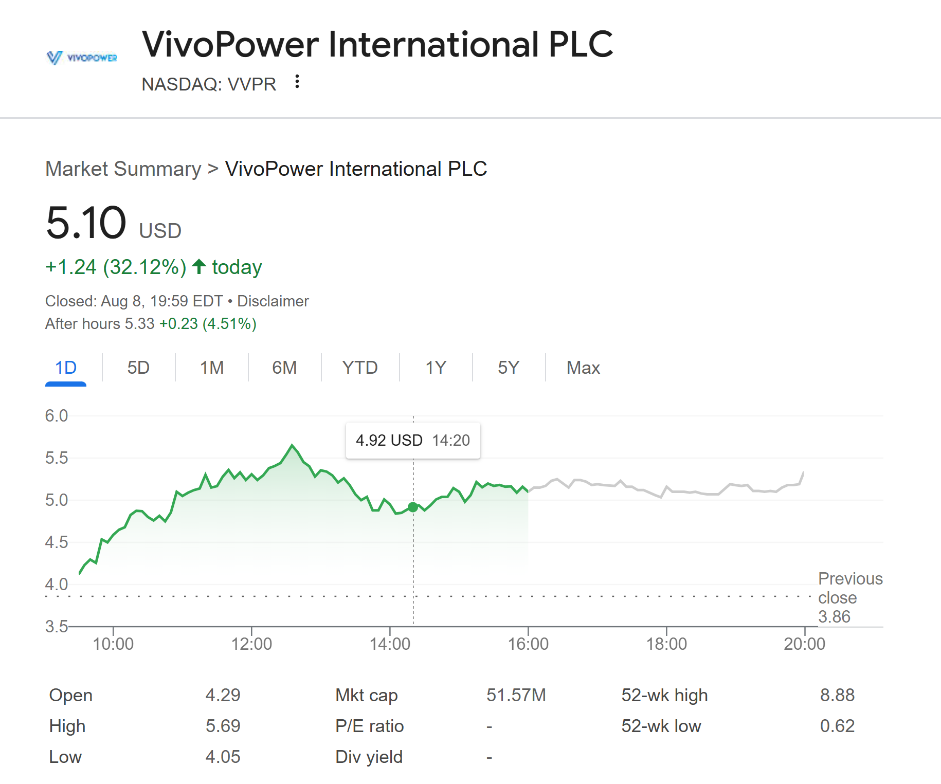 Shares of VivoPower, a solar power company listed on Nasdaq, surged by 32.12% to reach $5.10 on August 8, 2025. This increase was spurred by the company’s announcement to acquire $100 million worth of privately held Ripple Labs stock, aiming to expand its digital treasury strategy focused on XRP.