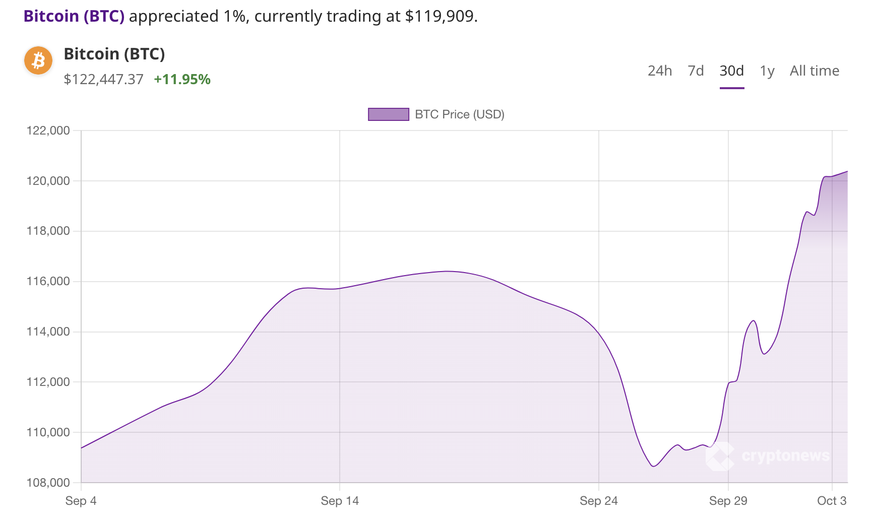 Bitcoin has seen a significant price increase, exceeding $122,000, amidst the U.S. government shutdown, which is causing instability in traditional financial markets. Investors are turning to cryptocurrencies as a protective measure against this economic and political unpredictability. Furthermore, the shutdown could potentially delay the release of the crucial jobs report scheduled for Friday, which might prompt the Federal Reserve to consider implementing more aggressive reductions in interest rates.