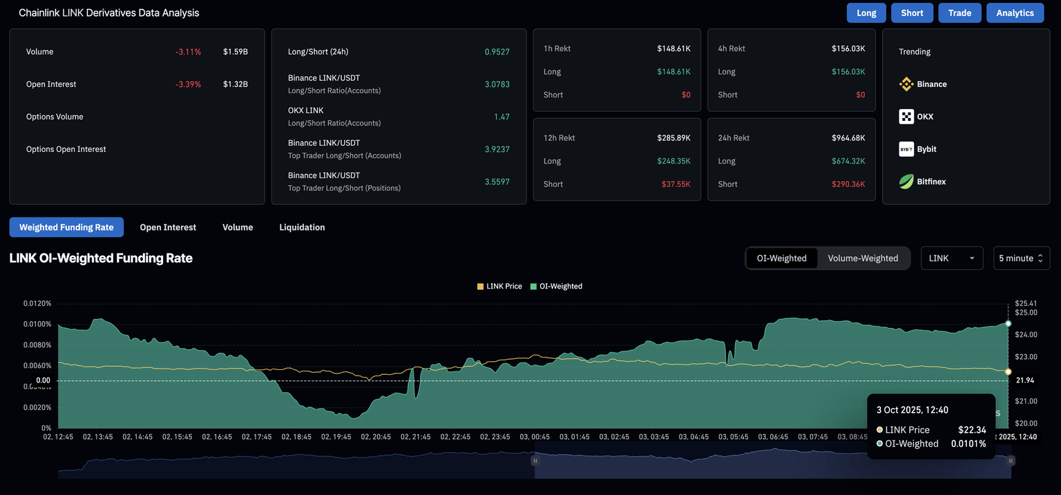 LINK derivatives data. Source: CoinGlass