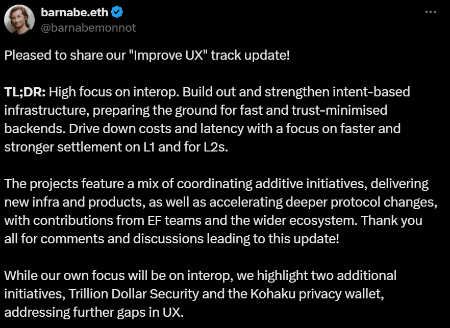 The Ethereum Foundation (EF) has announced a forward-thinking strategy focused on improving the overall user experience by enabling smoother and more comprehensive cross-chain functionality.