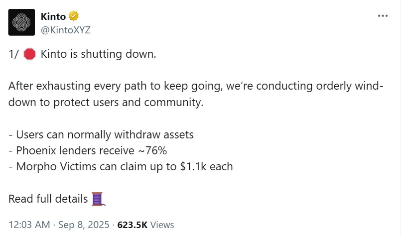 Kinto cited deteriorating market conditions as the primary factor forcing the project’s closure. The team stated that they had been working without pay since July, and the inability to secure final funding led to the decision to discontinue the project.