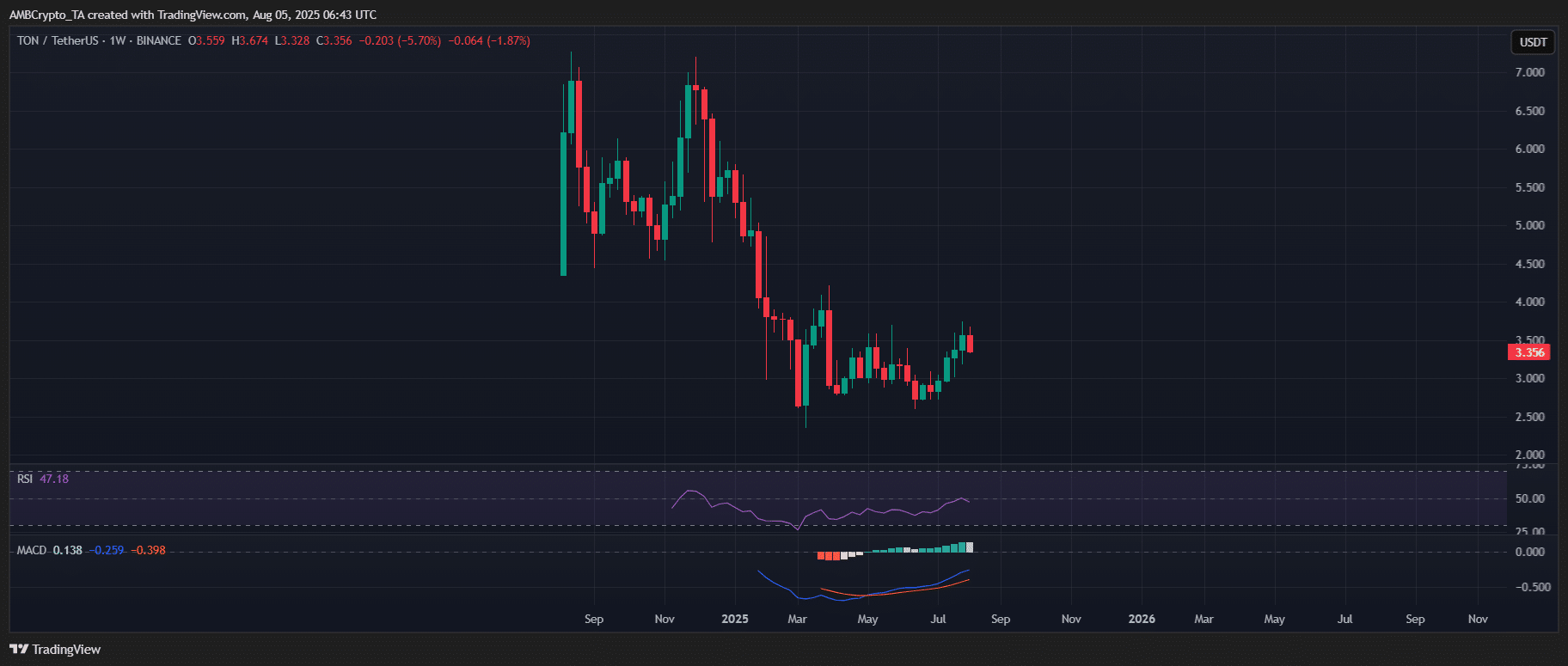 Now known as TON Strategy Co., the $558 million investment signals a firm commitment. Based on Toncoin’s current price of $3.35, the company could acquire approximately 166 million TON, immediately becoming a major holder.