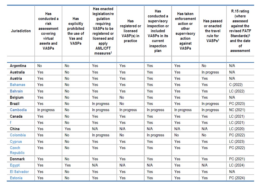 Prohibition is gaining traction among members of the Middle East and North Africa Financial Action Task Force and the Eastern and Southern Africa Anti-Money Laundering Group. However, the FATF cautions that jurisdictions should consider this approach carefully, as comprehensive bans can be resource-intensive and difficult to maintain.