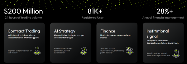 The AI-driven trading capabilities of Nivex are enhanced by a suite of tools designed to improve market analysis and decision-making. Users can access a trading signal marketplace, aggregating actionable insights derived from sophisticated data analytics. These signals provide guidance on market trends, asset volatility, and potential trading prospects. The integration of AI-powered quantitative trading techniques enables a systematic analysis of extensive datasets, revealing correlations and trends that may not be immediately apparent to human analysts. This data-centric strategy ensures users can make well-informed decisions, whether executing automated trades or managing complex cryptocurrency portfolios.