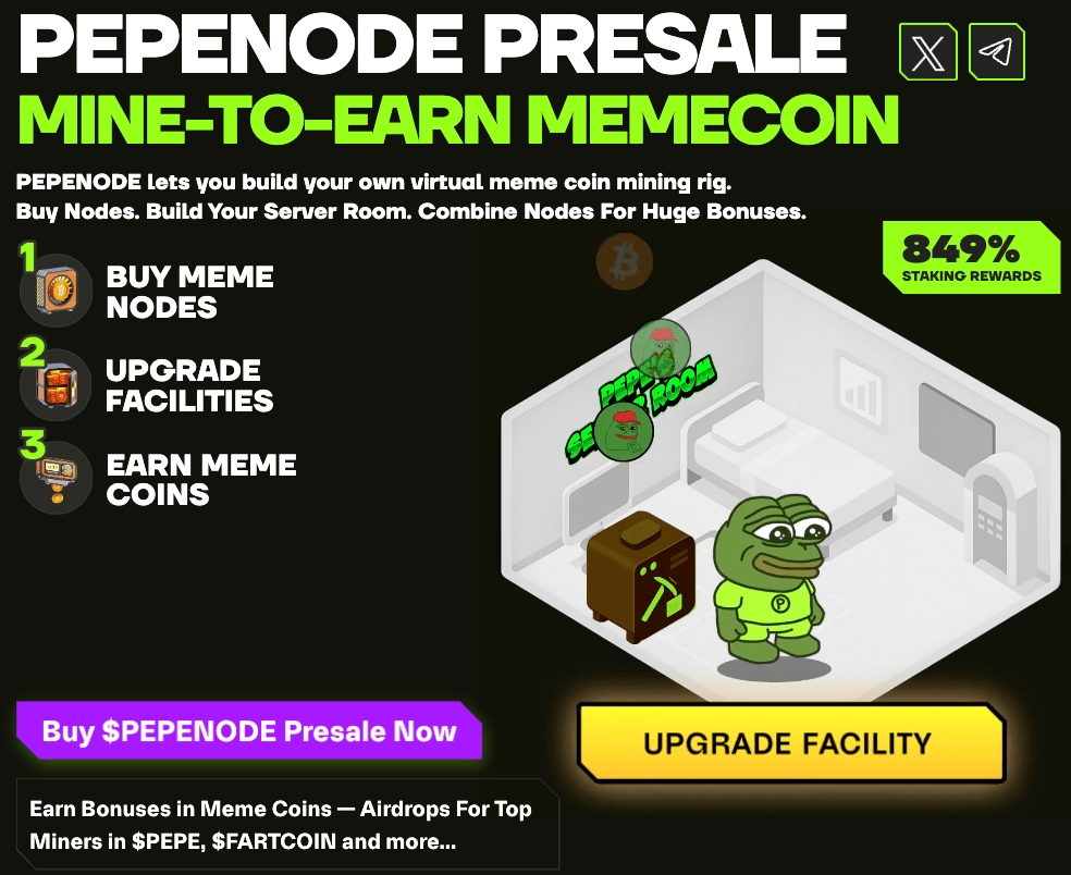 PEPENODE (PEPENODE) is an intriguing presale offering, combining meme coin popularity with a crypto mining simulation. Shifting from traditional Bitcoin mining competition, it presents a virtual “Mine-to-Earn” system.