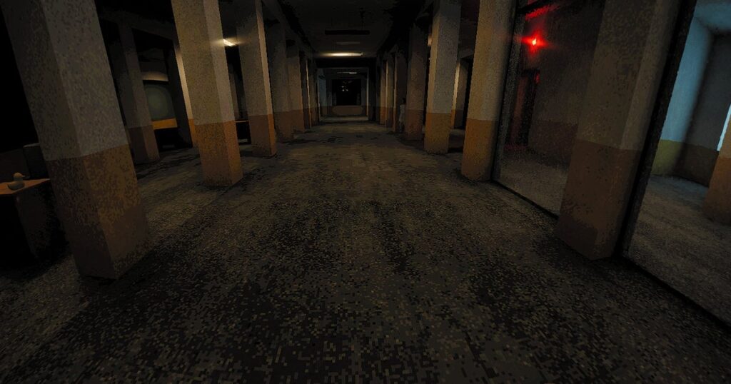 Final observations: I successfully accessed a computer room on level eight, located directly beneath one of the red lights. It contained several monitors and another chair, positioned within a pool of what appears to be blood. This is certainly ominous. My ability to defend myself while strapped to this chair is questionable. I propose we regroup and compare findings on level seven, assuming I manage to reach it.