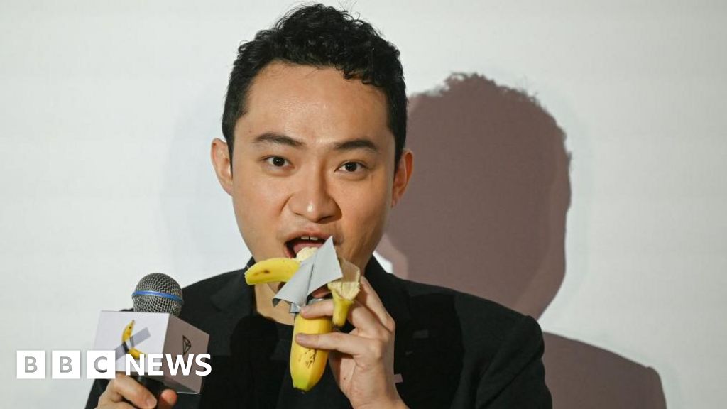 Getty Images Chinese crypto entrepreneur Justin Sun pictured eating a banana which was part of an artwork he paid $6.2m for