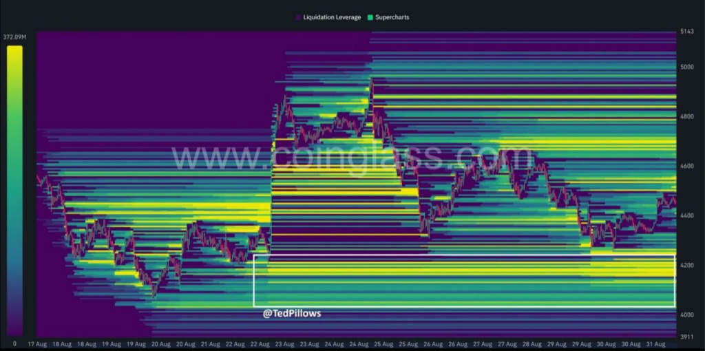 Analysts advise caution. According to analyst Ted, Ether’s recent better performance compared to Bitcoin might see a short pause. A retest around the $4,000 mark is possible as liquidity clusters are addressed and traders reassess their positions.